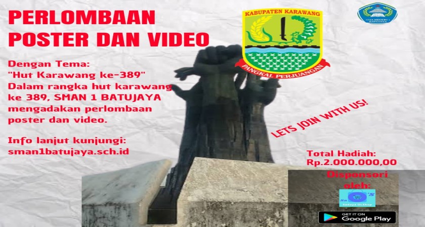 Halo sahabat SMAN 1 Batujaya, Yuk!!! Ikutaan lomba membuat poster dan video dalam rangka memperingati HUT Karawang ke-389