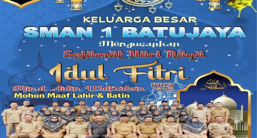 Gema Takbir berkumandang menggema di seluruh negeri mengiringi kepergian mu Ramadhan, keluarga besar SMAN 1 Batujaya mengucapkan Selamat Idul Fitri 1443 H, Mohon maaf Lahir dan Bathin,