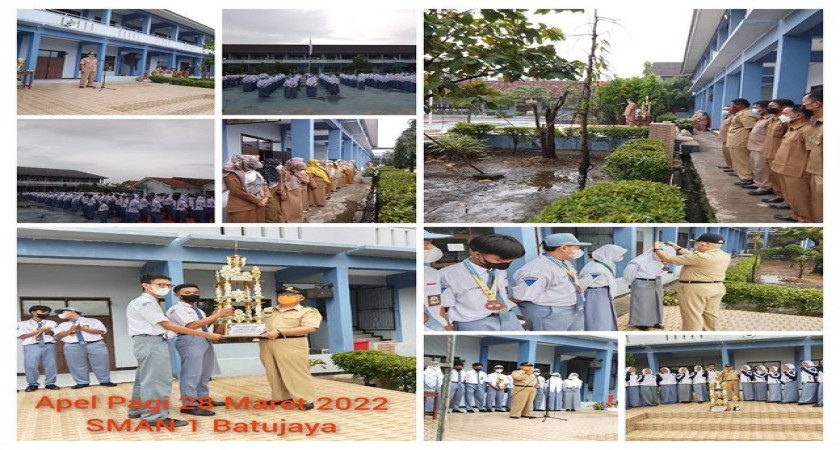 Senin (28/03) SMAN 1 Batujaya melaksanakan Apel Pagi yang secara rutin, dipimpin oleh Wakasek Kurikulum menyampaikan kegiatan Smartren dan penyerahan piala lomba dan medali ekskul kepada kepala sekolah.