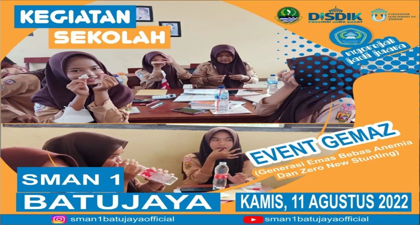 Alhamdulillah kegiatan EVENT GEMAS (Generasi Emas Bebas Anemia dan Zero new Stunting) di SMAN 1Batujaya yang bekerja sama dengan Fasilitas Kesehatan (Faskes) Batujaya telah dilaksanakan dengan kegiatan serentak meminum obat TTD/FE khusus untuk peserta didik perempuan berjalan dengan lancar, Terimakasih kepada seluruh pihak yang terlibat dan membantu kelancaran kegiatan tersebut.